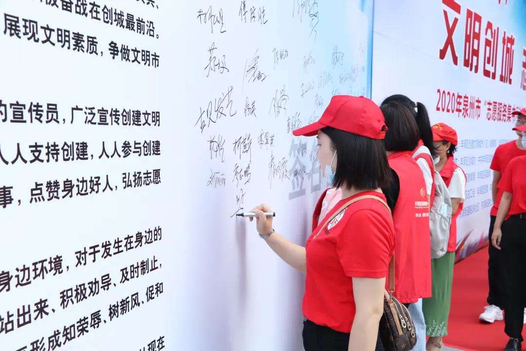 启动仪式上,志愿者代表带头宣读《“文明创城 志愿同行”倡议书》,同时参与者有序地在签名墙上签名,承诺会以身作则,争当文明创城的践行者、传播者、监督者,共同为泉州创建第六届全国文明城市贡献志愿力量。