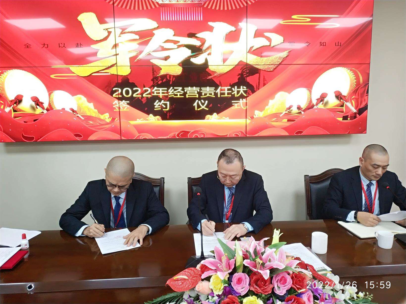 最后,由公司林总经理与各小区签订新一年度经营责任状,并与全体员工代表合影留念。