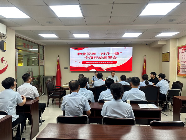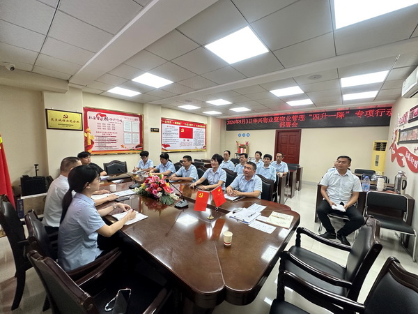2024年9月3日下午,泉州市华兴物业管理有限公司开展暨物业管理“四升一降”专项行动部署会,推进物业管理立行立改有关工作,进一步提升公司物业管理水平。